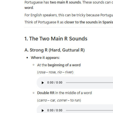 Weekly or twice-weekly video lessons focused on practical conversation, pronunciation correction, and applying what you've learnt.These aren't traditional lectures, they're interactive sessions where you speak Portuguese from day one, receive immediate feedback, and build real-world communication skills.